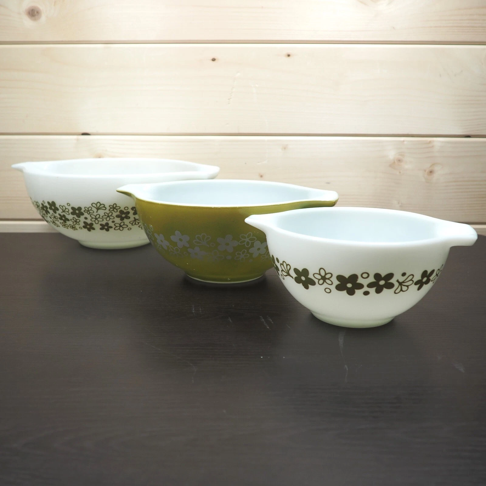 You’ll often find early Pyrex pieces made from milk glass, known for their opaque white appearance. These bowls are sturdy and bring a classic touch to any collection.