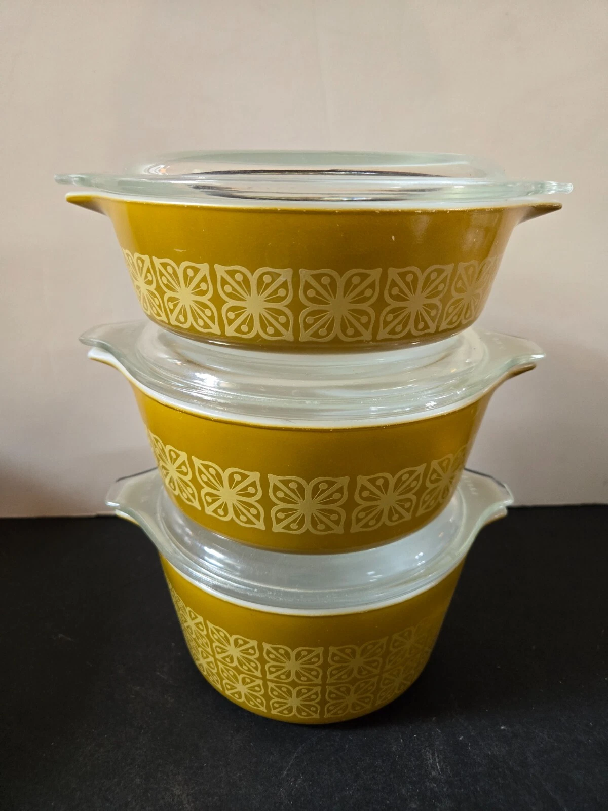 You’ll often find casserole dishes and mixing bowls in this pattern. They were popular in the 1950s and are still sought after today.