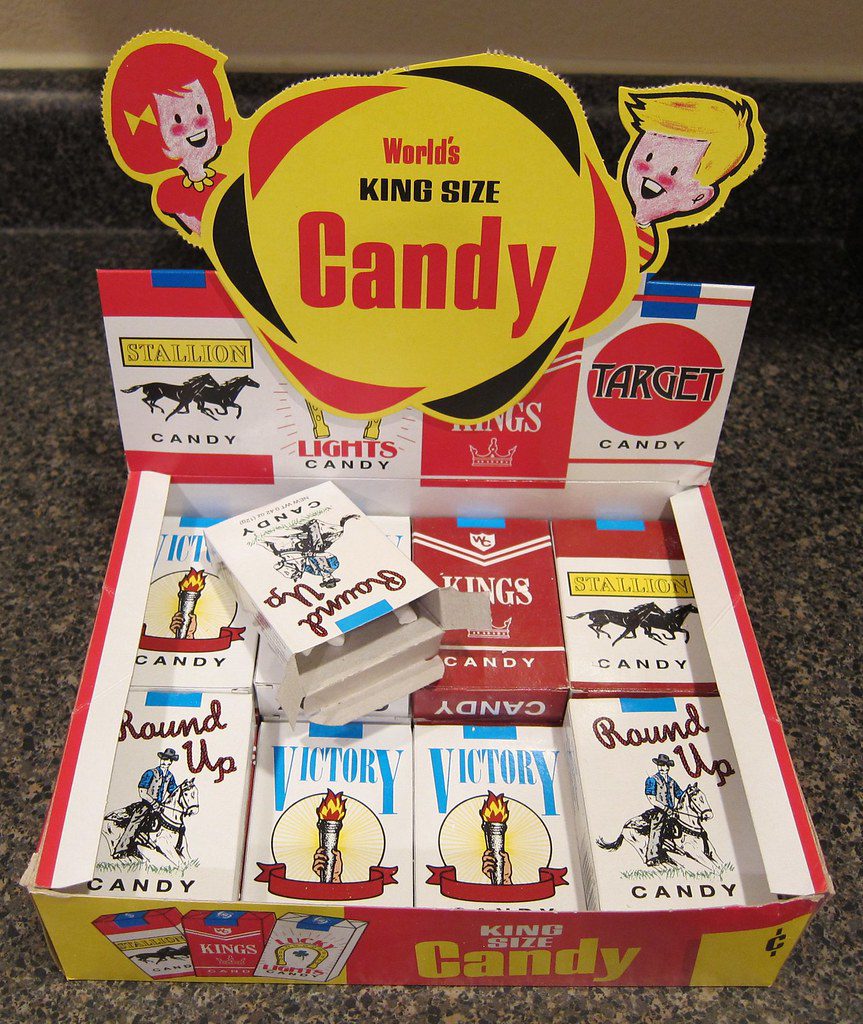 You probably remember candy cigarettes looking just like the real thing. Back in the ’50s, they were super popular and even used real cigarette brand designs.