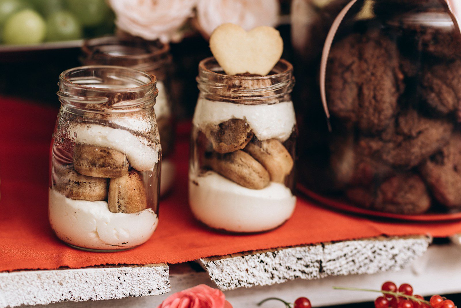 clear glass jars on red table